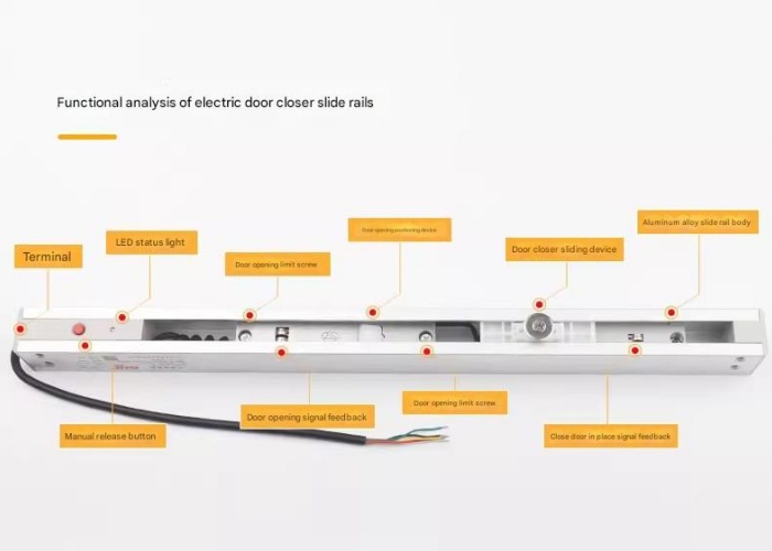 - 电动闭门器安装在常开门上。如果需要关闭门扇,可以关闭。如果门需要频繁关闭,可以安装一个开/关按钮来关门。频繁强行关门可能会损坏产品。
