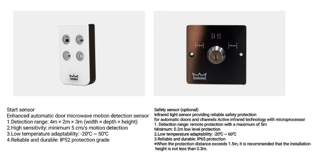 - 适配逻辑:医疗场景需严格控制细菌传播,感应式自动门(非接触开启)可减少医护人员与患者手部及门体的接触,降低交叉感染风险。手术室与ICU的自动门需具备“密封防菌”功能(多为滑动密封自动门),配合净化系统维持室内无菌环境,并可通过脚感应或人脸识别开启,避免医护人员的手部污染。养老院与康复中心的自动门需适配轮椅与担架的通行,门体开启宽度更大(通常≥1.2米),关门速度可调(慢缓冲),以防夹伤行动不便者。