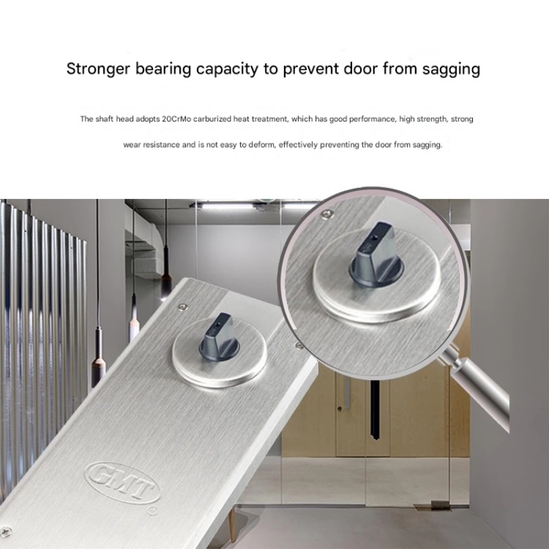 - 隐藏式安装,不破坏门体美观地弹簧的主体嵌入地板槽内,仅通过转轴与门体底部连接。不需要像传统闭门器那样在门表面安装机械臂或支架,可以最大限度地提高门的整体性和透明度(特别是玻璃门和极简主义风格的门)。这满足了商业空间(如酒店大堂和豪华店面)的“简单而美观”的设计需求。