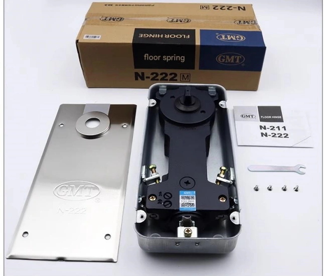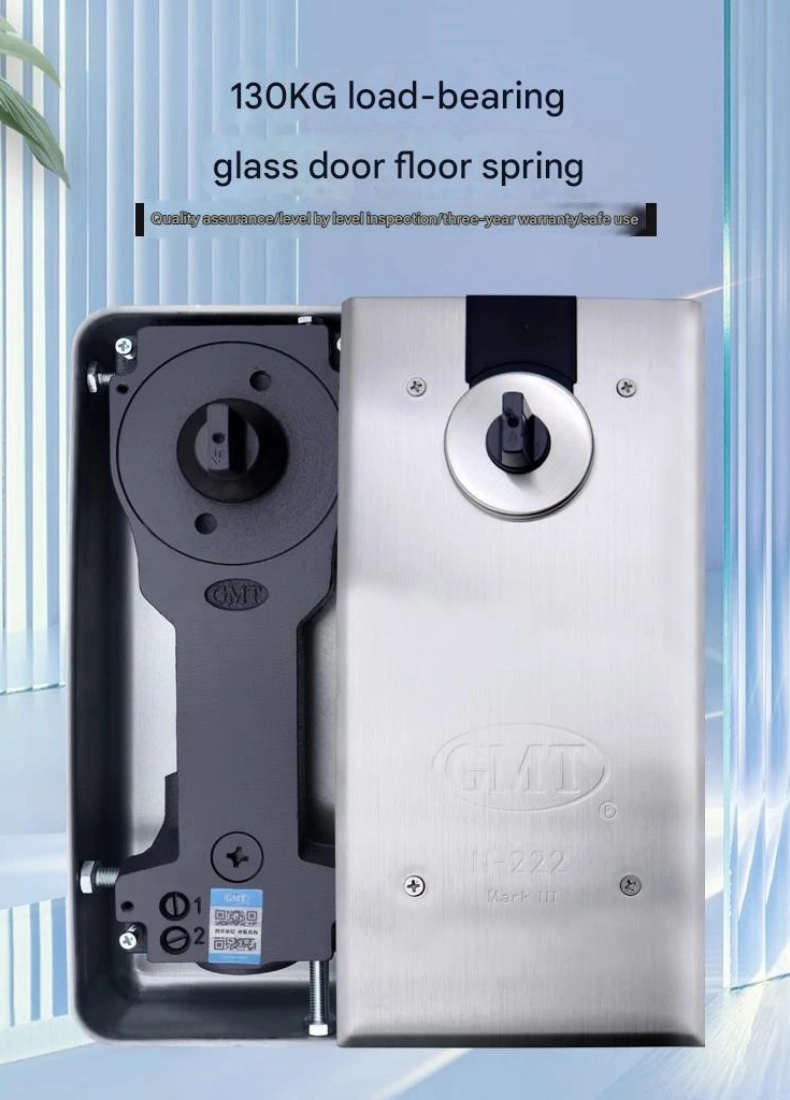 - 高承重能力,适配多种门型 主流地板弹簧的承重范围多为60-150kg(部分工业级型号可达200kg以上),可稳定支撑玻璃门、不锈钢门、实木复合门等重型门扇。这有效避免了因承重不足导致门扇长期使用后倾斜或下沉的问题,解决了普通闭门器“承重有限”(多适用于30kg以下门重)的痛点。
