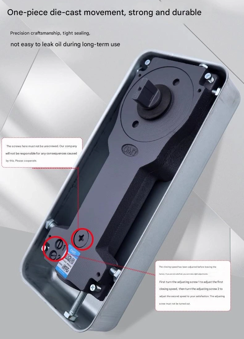 - 结构坚固、耐磨、抗老化核心部件(如液压缸、转轴、弹簧等)多采用黄铜、不锈钢等耐腐蚀材料,密封性能优良。它们可以有效地隔离灰尘和水蒸气(部分防水型号可用于半户外门),减少内部部件的生锈或堵塞。在正常使用情况下,它们的使用寿命可达5-10年,比普通塑料或薄铁皮制成的闭门器要长得多。