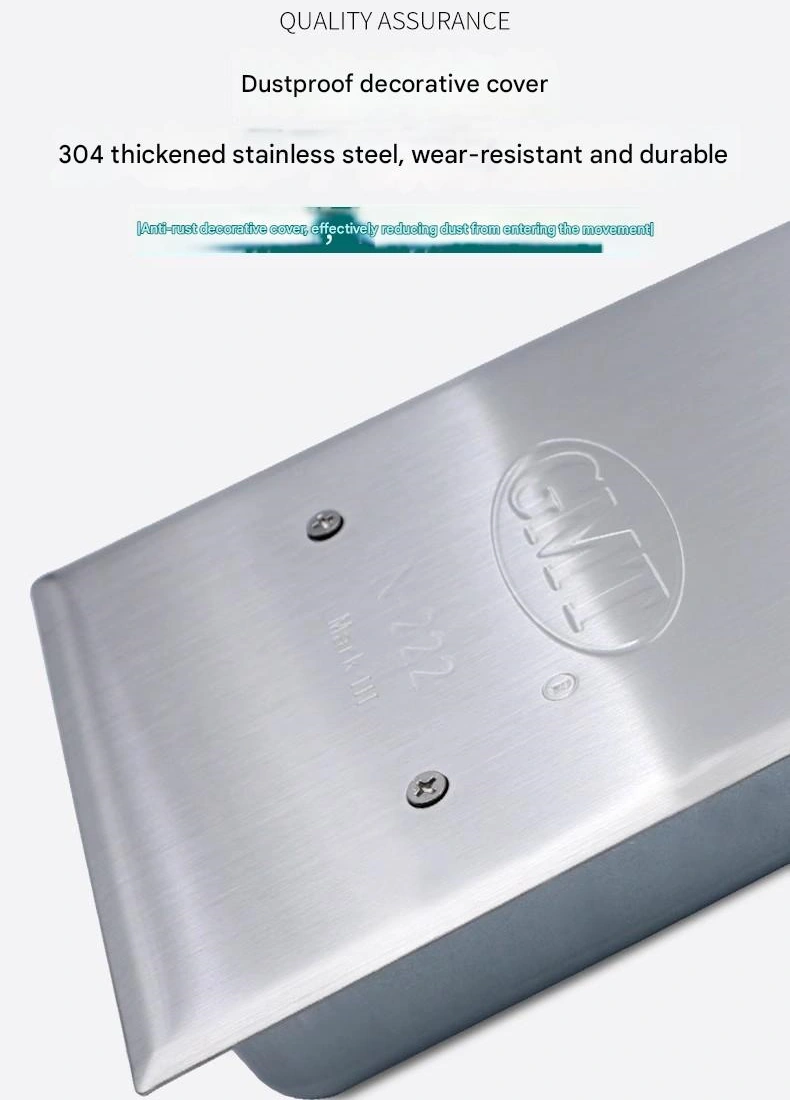 - 隐藏式安装,不破坏门体美观地弹簧的主体嵌入地板槽内,仅通过转轴与门体底部连接。不需要像传统闭门器那样在门表面安装机械臂或支架,可以最大限度地提高门的整体性和透明度(特别是玻璃门和极简主义风格的门)。这满足了商业空间(如酒店大堂和豪华店面)的“简单而美观”的设计需求。