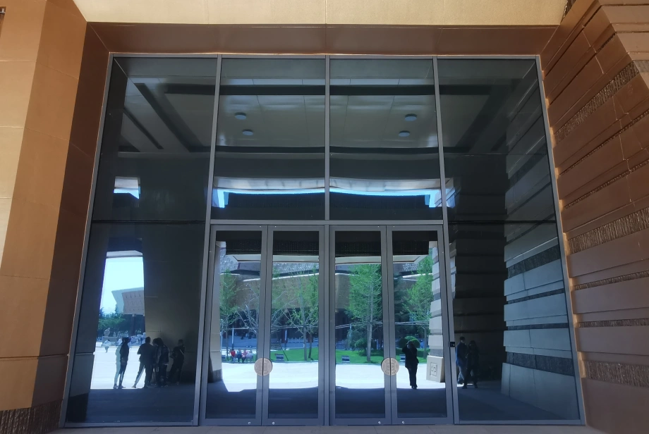 型材厚度2.5mm,表面高温氟碳喷涂工艺处理、阳极氧化,重量轻、抗腐蚀,适合办公、商铺场景。